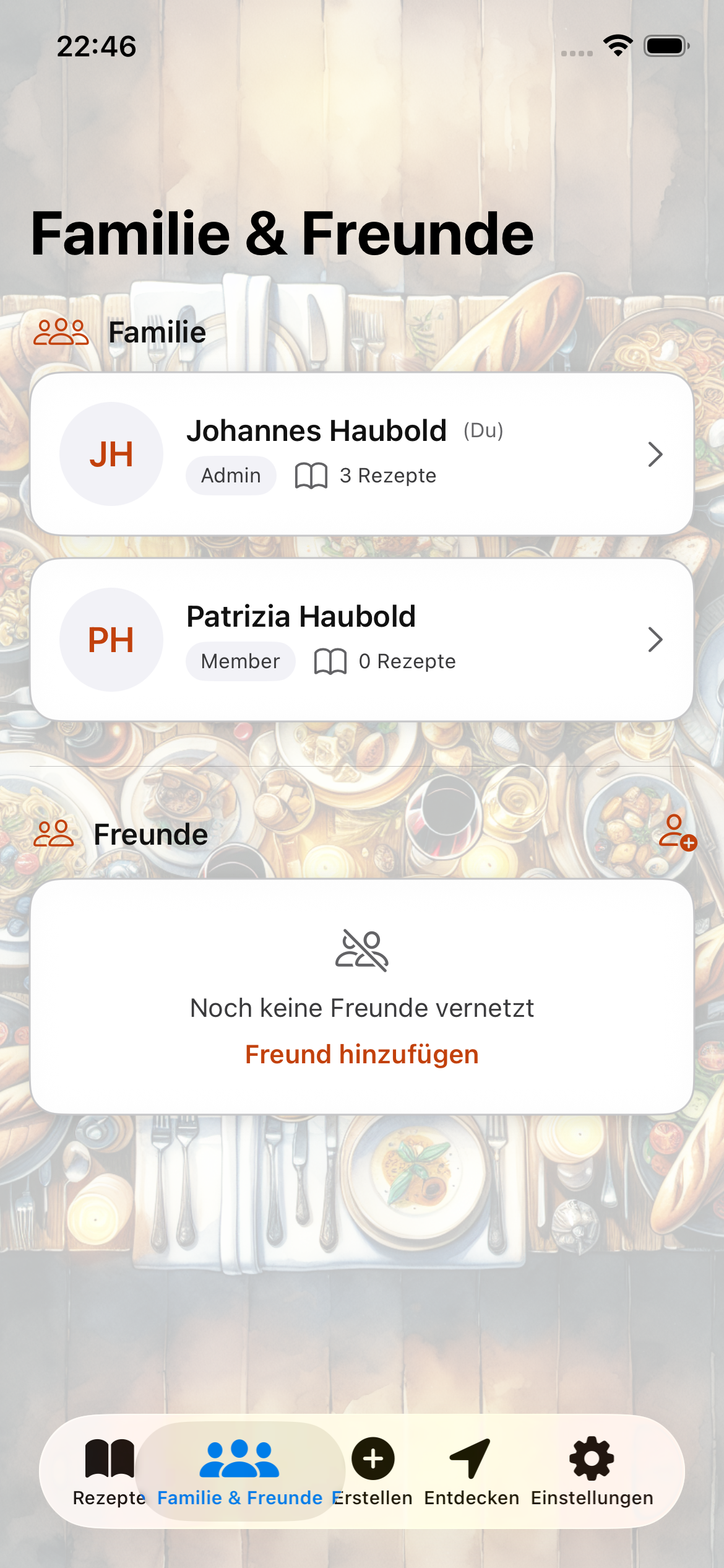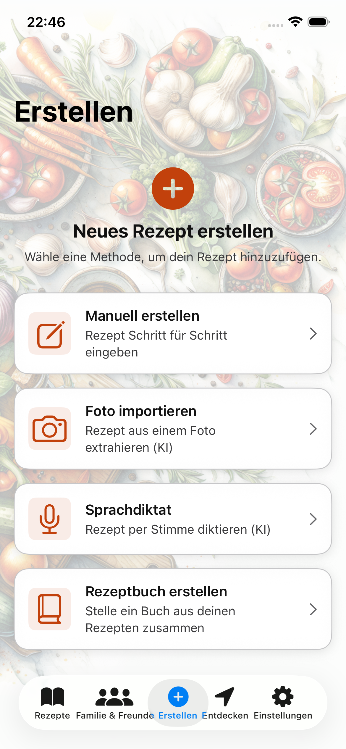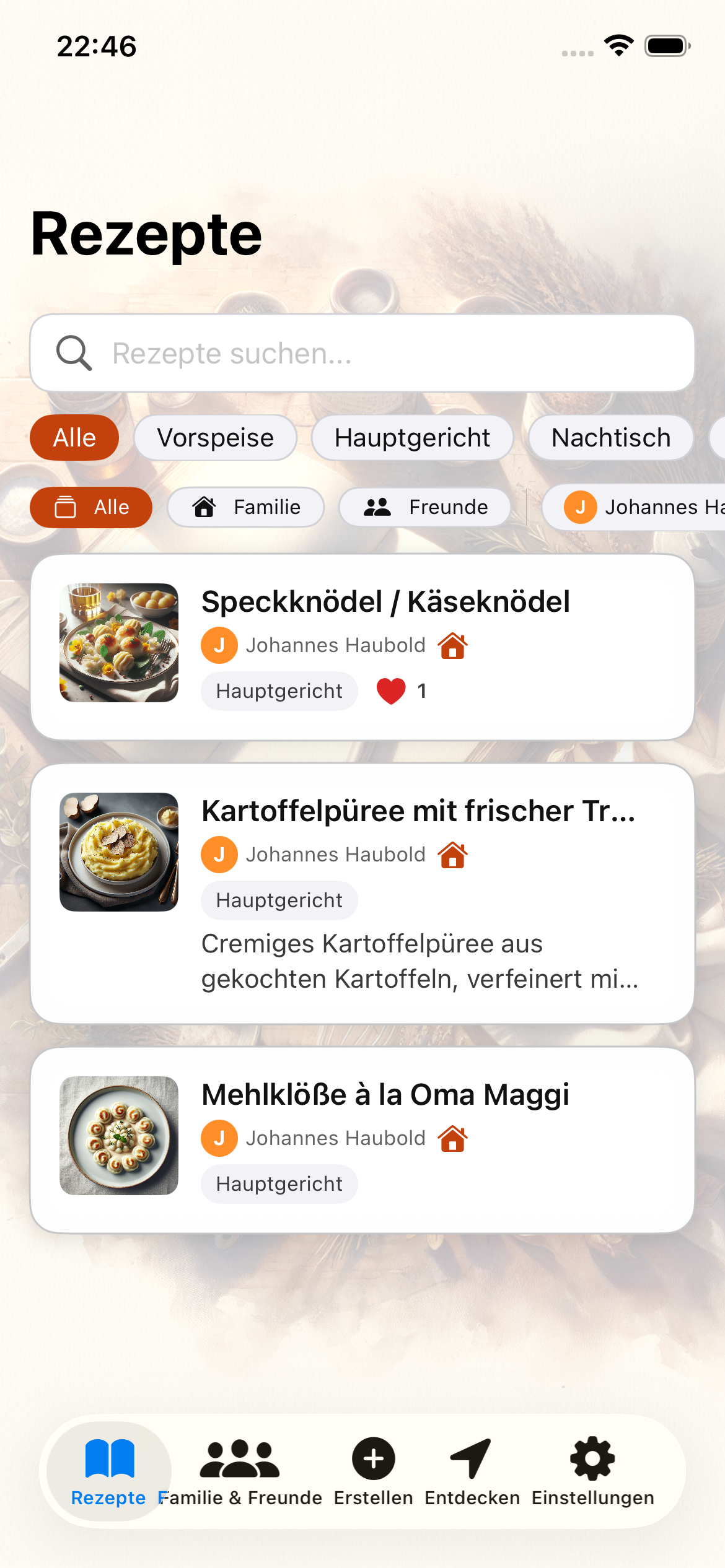 Sammle, teile und bewahre die Rezepte deiner Familie — mit KI-Unterstützung.